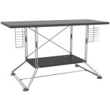 - The silver double steel rod frame is paired with black shelves.